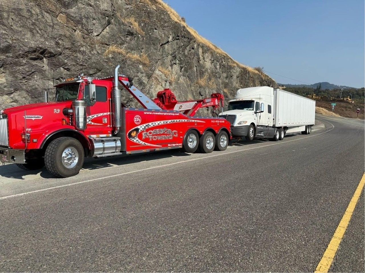 Roseburg Towing handles medium and heavy-duty towing for box trucks, buses, RVs, tractor trailers, and commercial vehicles in Roseburg, Oregon.